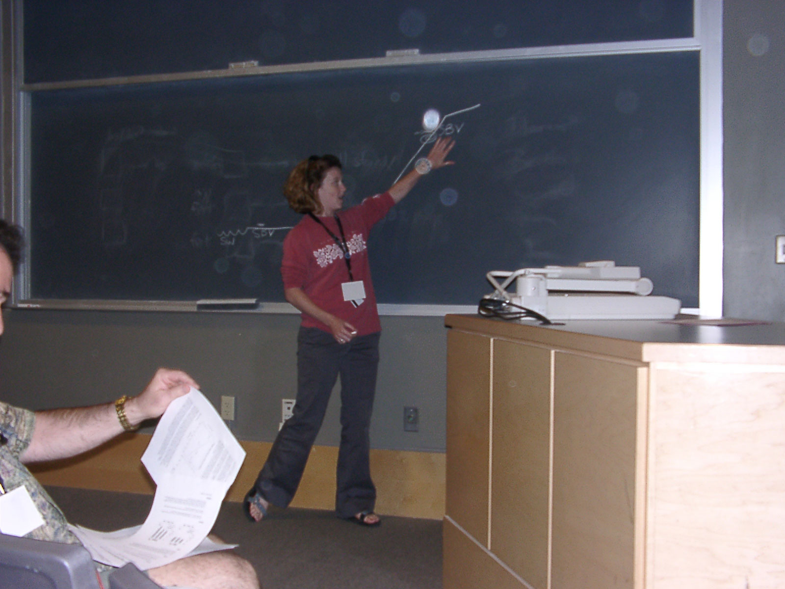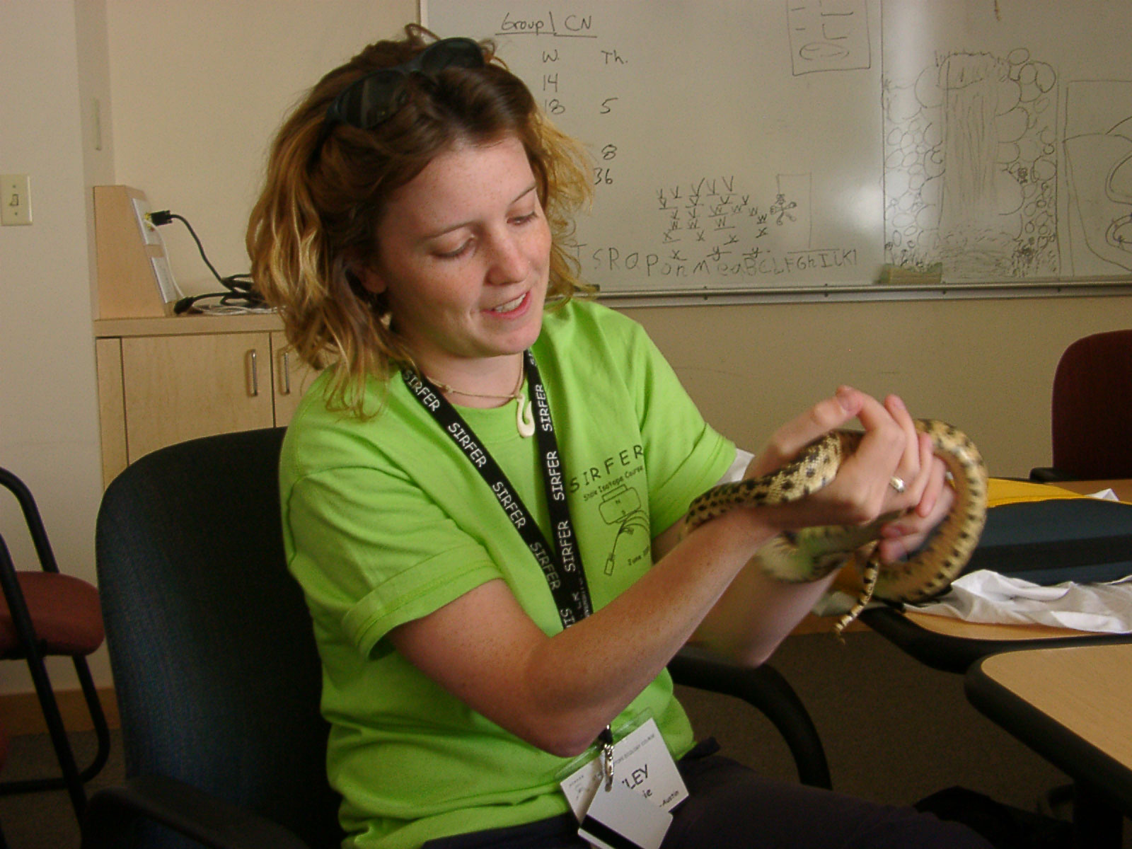 This is me during our week one presentation of our data. We took samples of invertebrates and soil at three sites in a mountain meadow - bank of stream, back of meadow and top of ridge - to see if insects were getting water from the stream or from another source such as groundwater. We used deuterium (2H) isotopes. |
