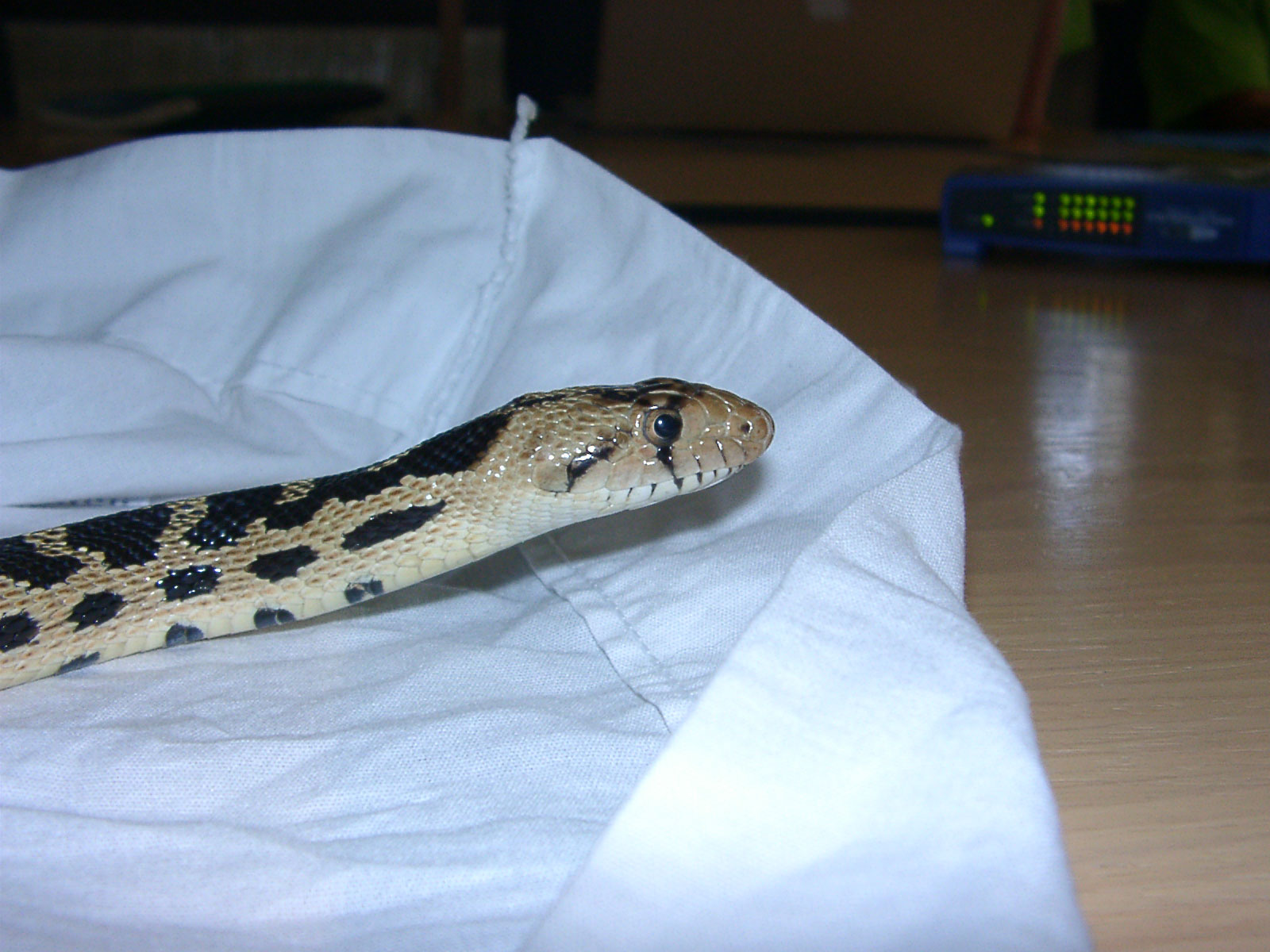 Here is me with the gopher snake Scott found (Pituophis catenifer), she was about 5 feet long and had beautiful markings. She was also very calm and let us handle her for a long time. |
