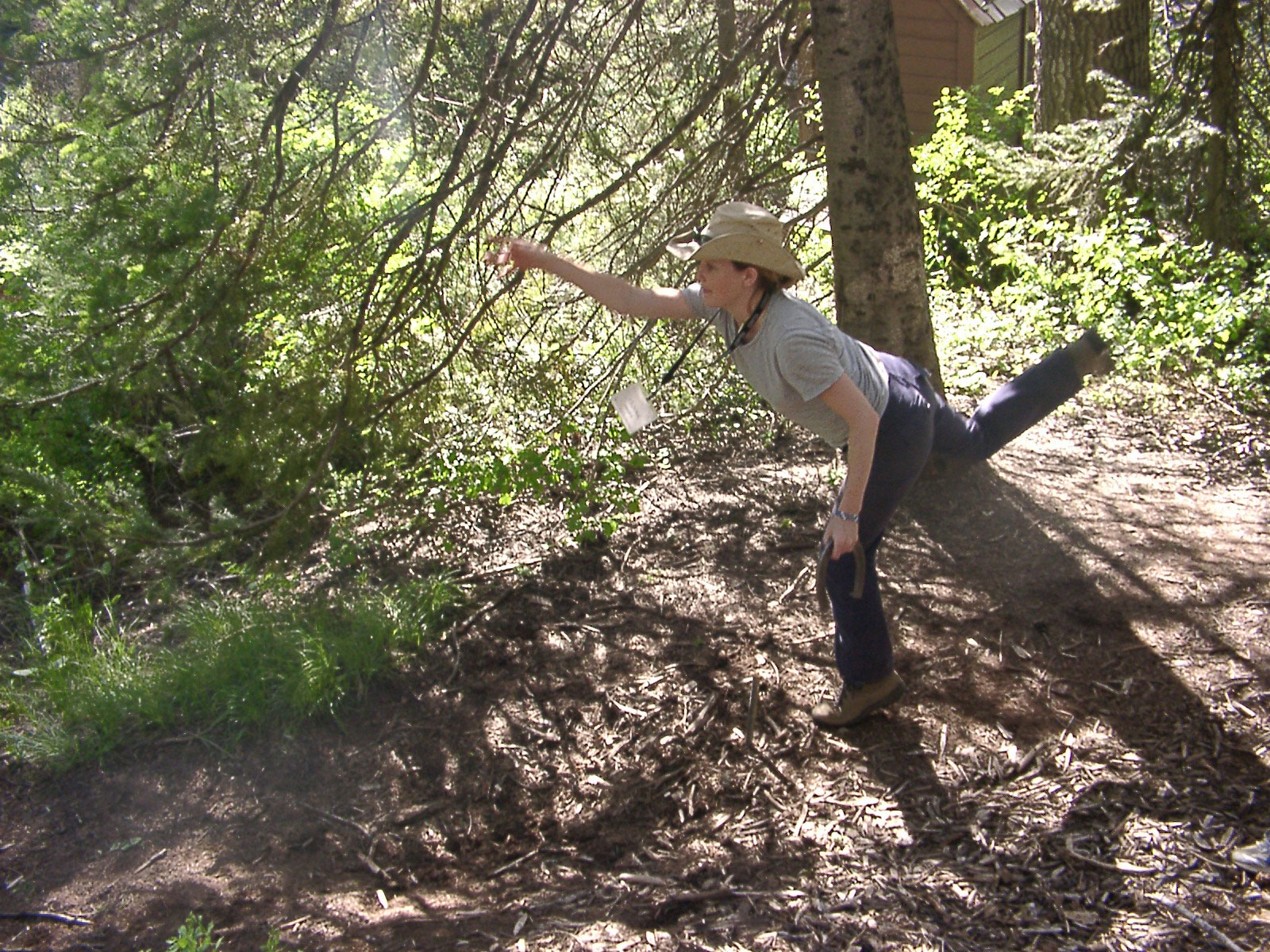 This is me throwing a horseshoe at the annual tournament at Jim's cabin. At first I was good, but we didn't make it out of the first round. |