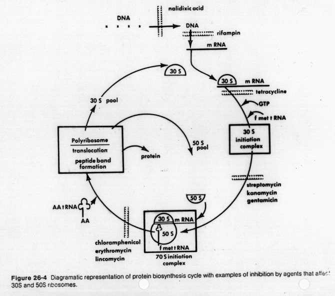 review flow of information in the cell and points of antibiotic attack