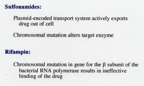 b. Frequency of spontaneous mutation ~10-7 to 10-9 ; this is much lower than frequency of acquition of resistance plasmids.