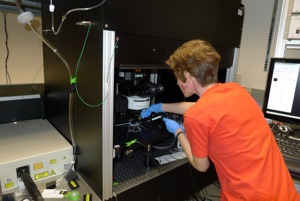 HIlary and Sanghee obtain our lab’s first 2-photon images of live thymic tissue!