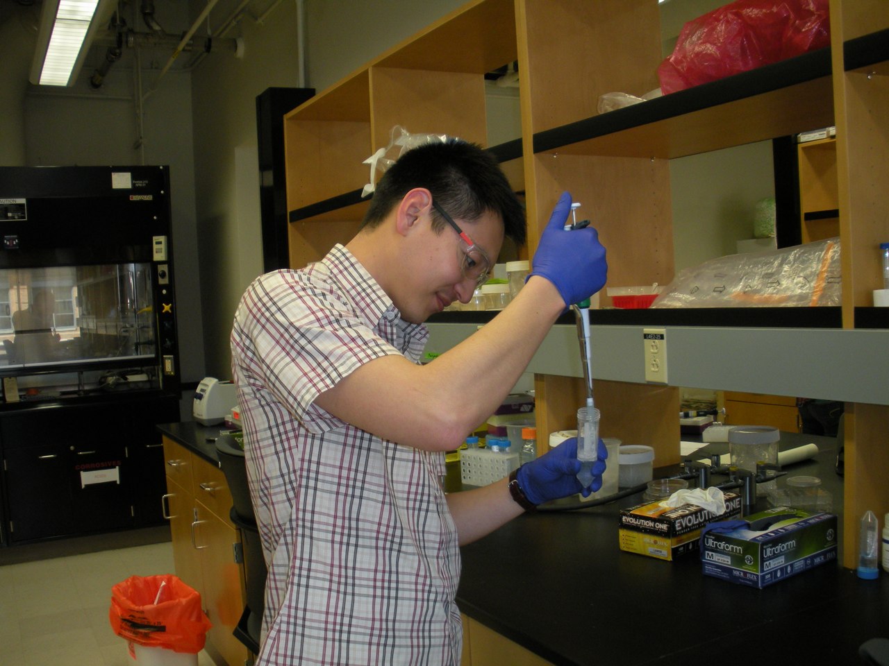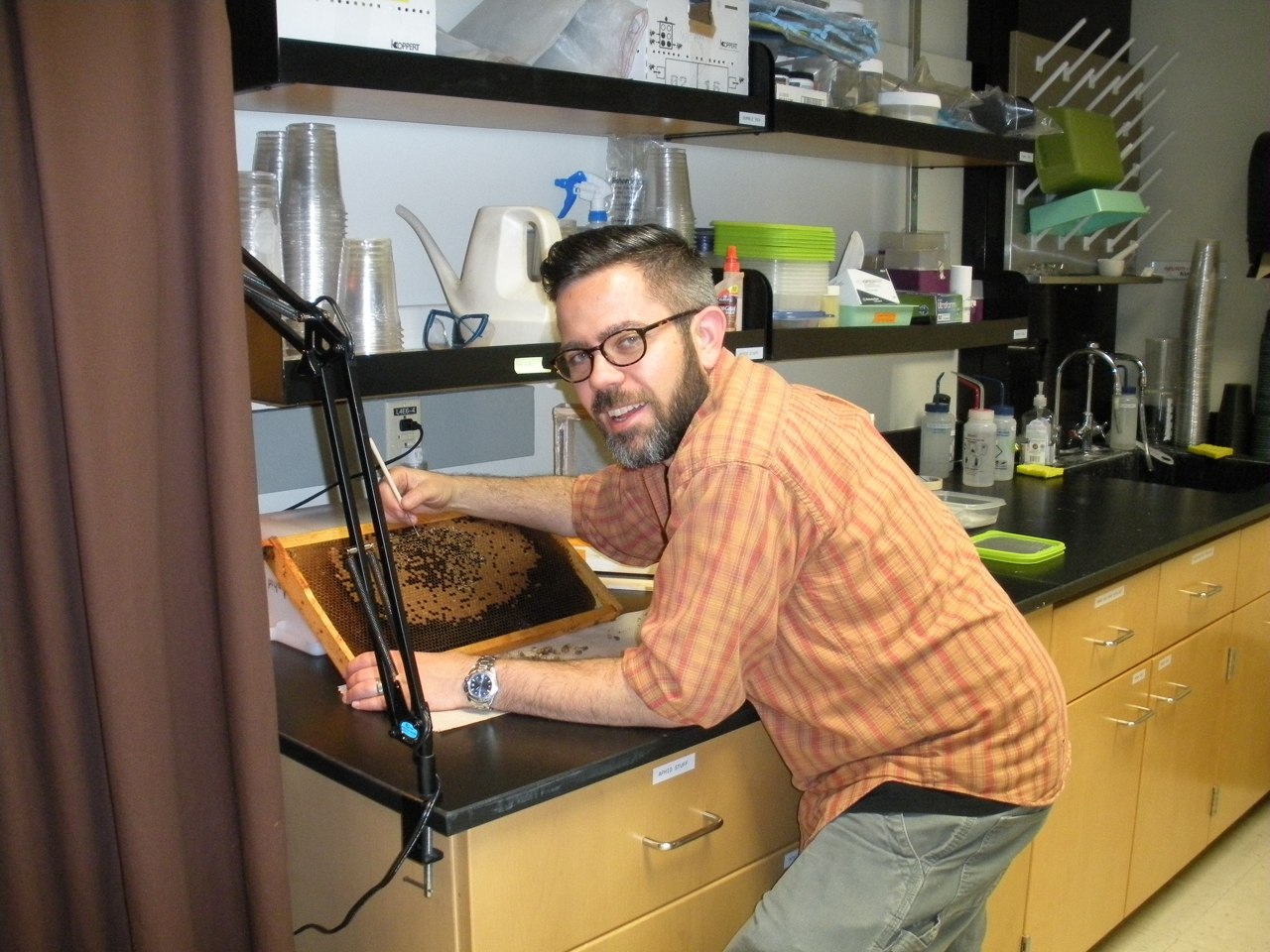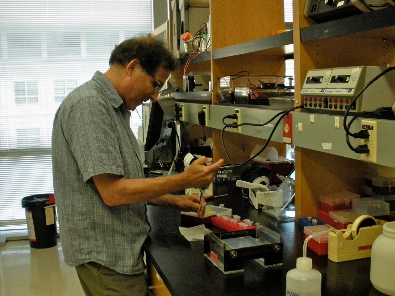 Fast shutter speed catches Howard Ochman in the lab. (October 2014)