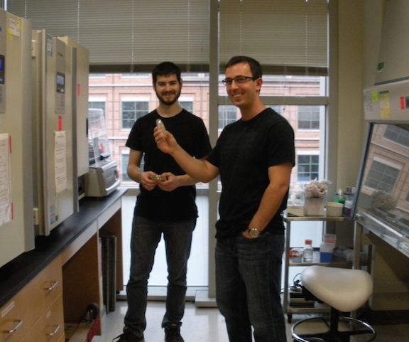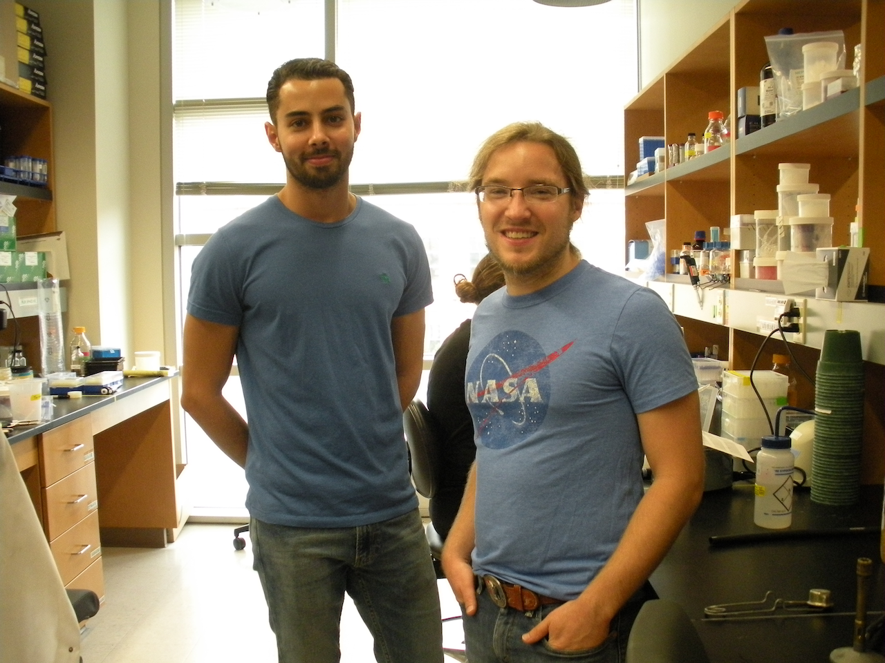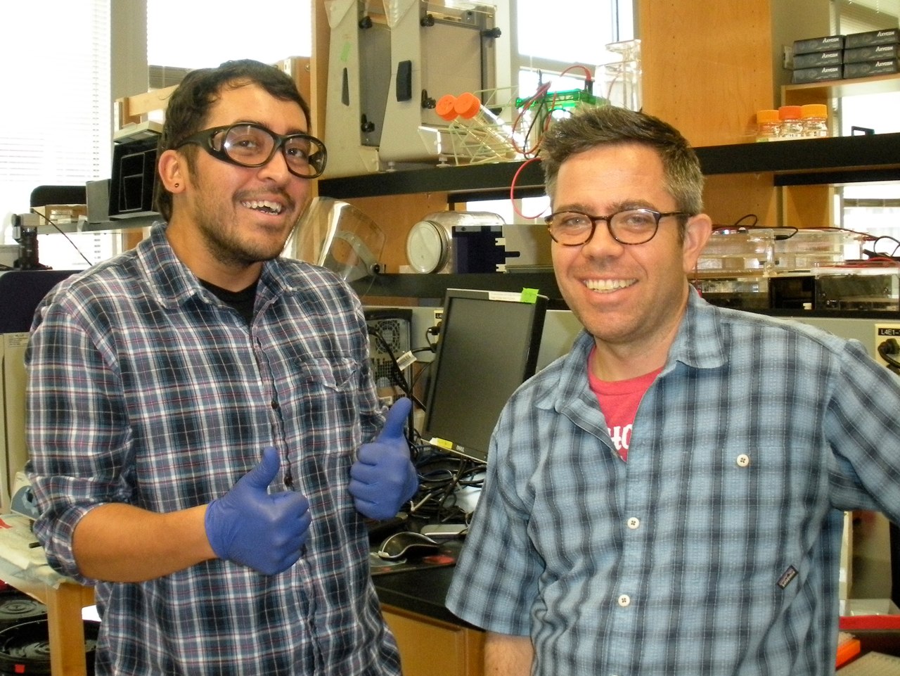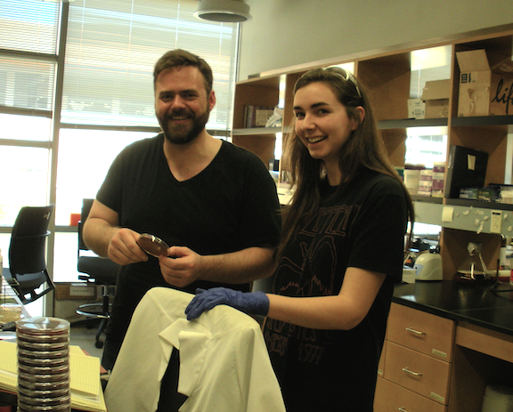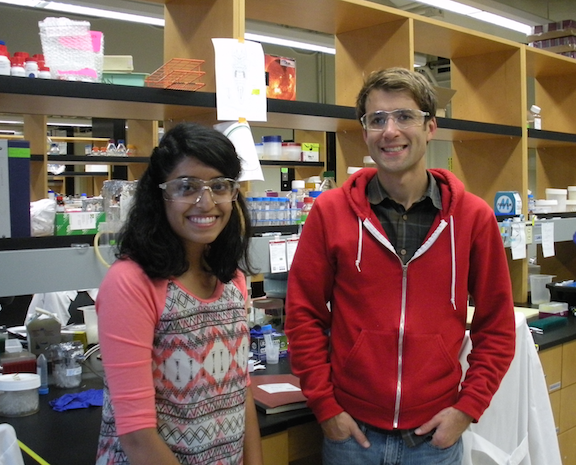 Fast shutter speed catches Howard Ochman in the lab. (October 2014)