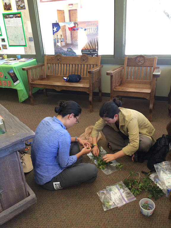 ![]() Becky C. and Serena Z. collect field samples in Langrty, TX (summer 2016) |
