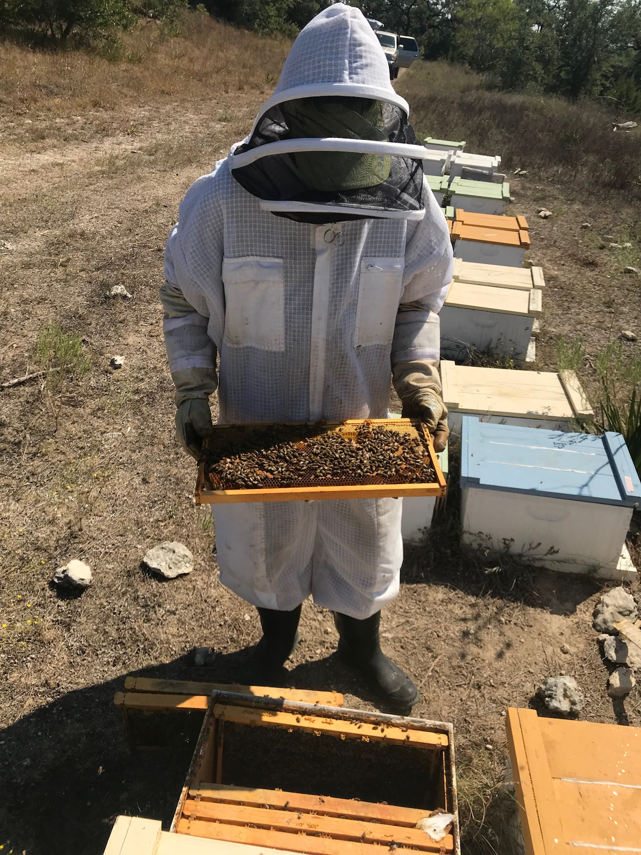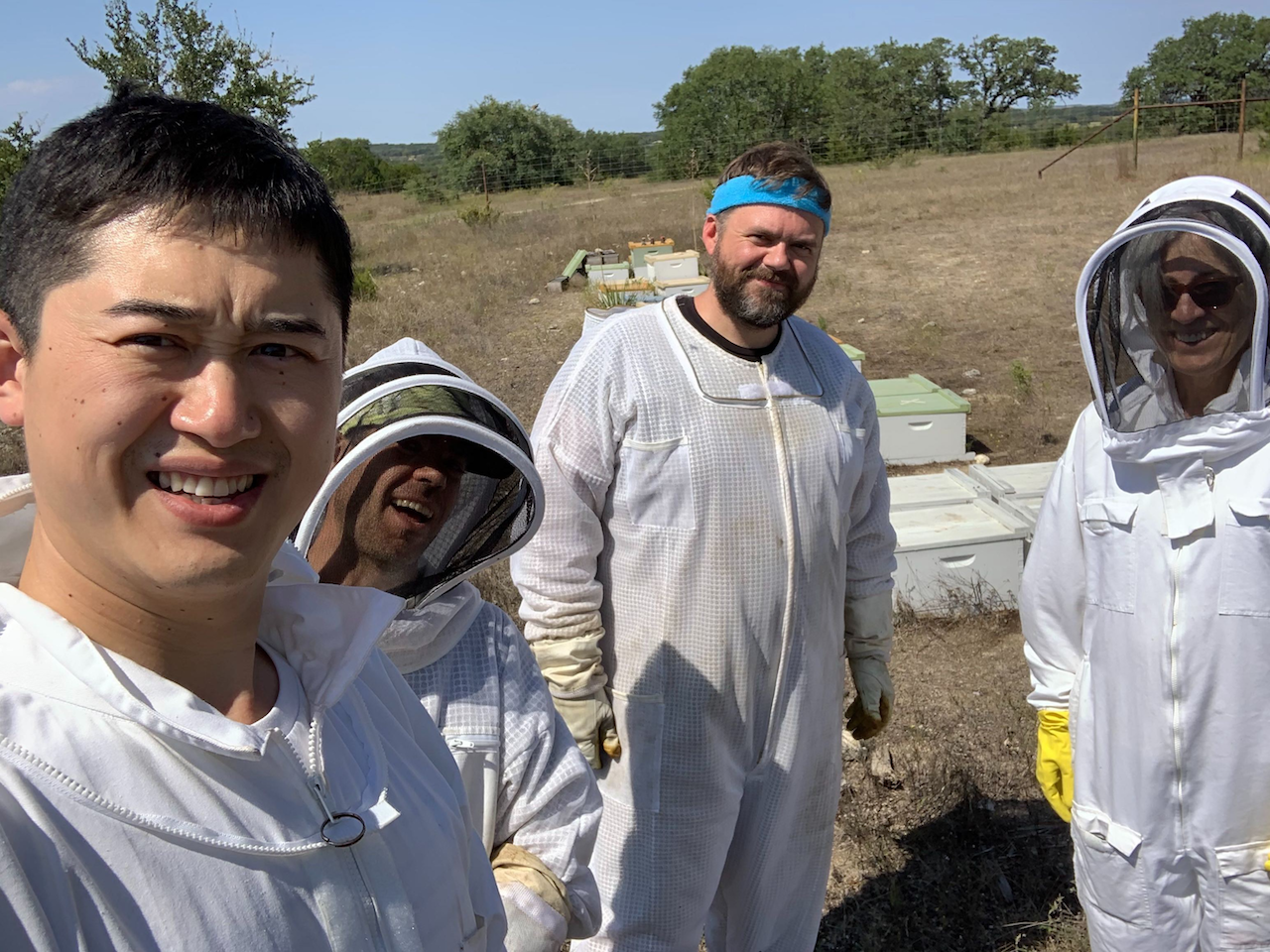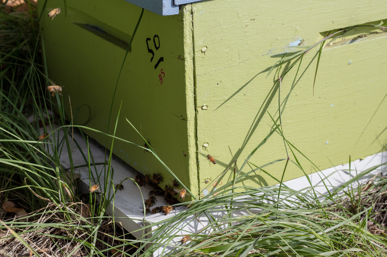 ![]() Moran lab worker bees attend the hives (November 2018) |