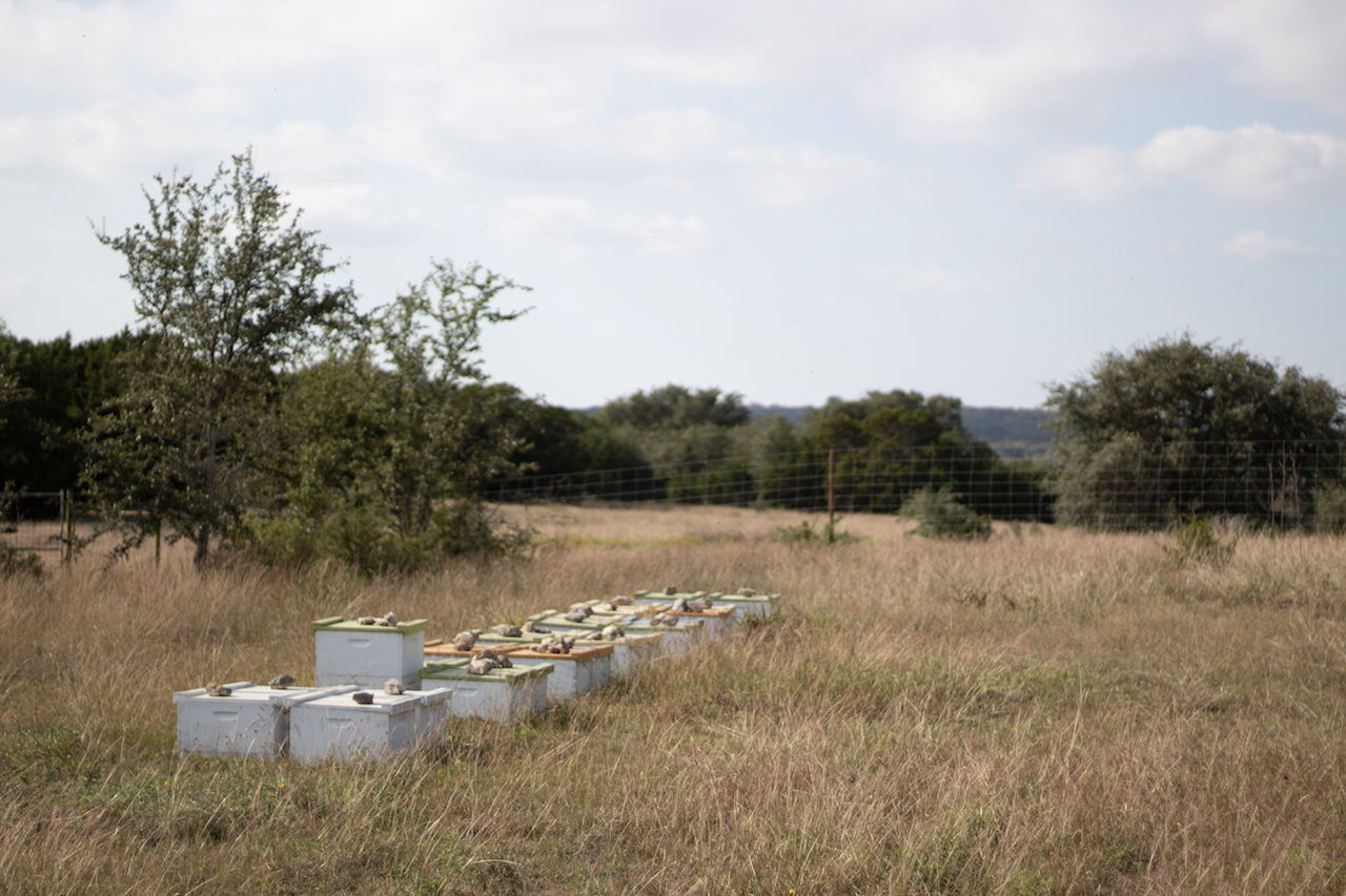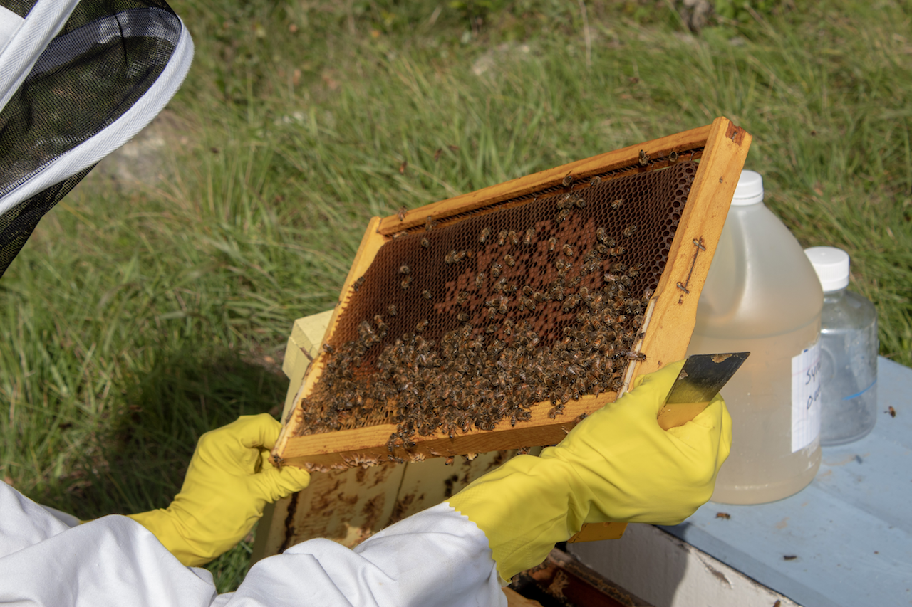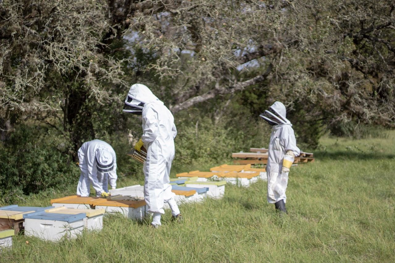 ![]() Moran lab worker bees attend the hives (November 2018) |