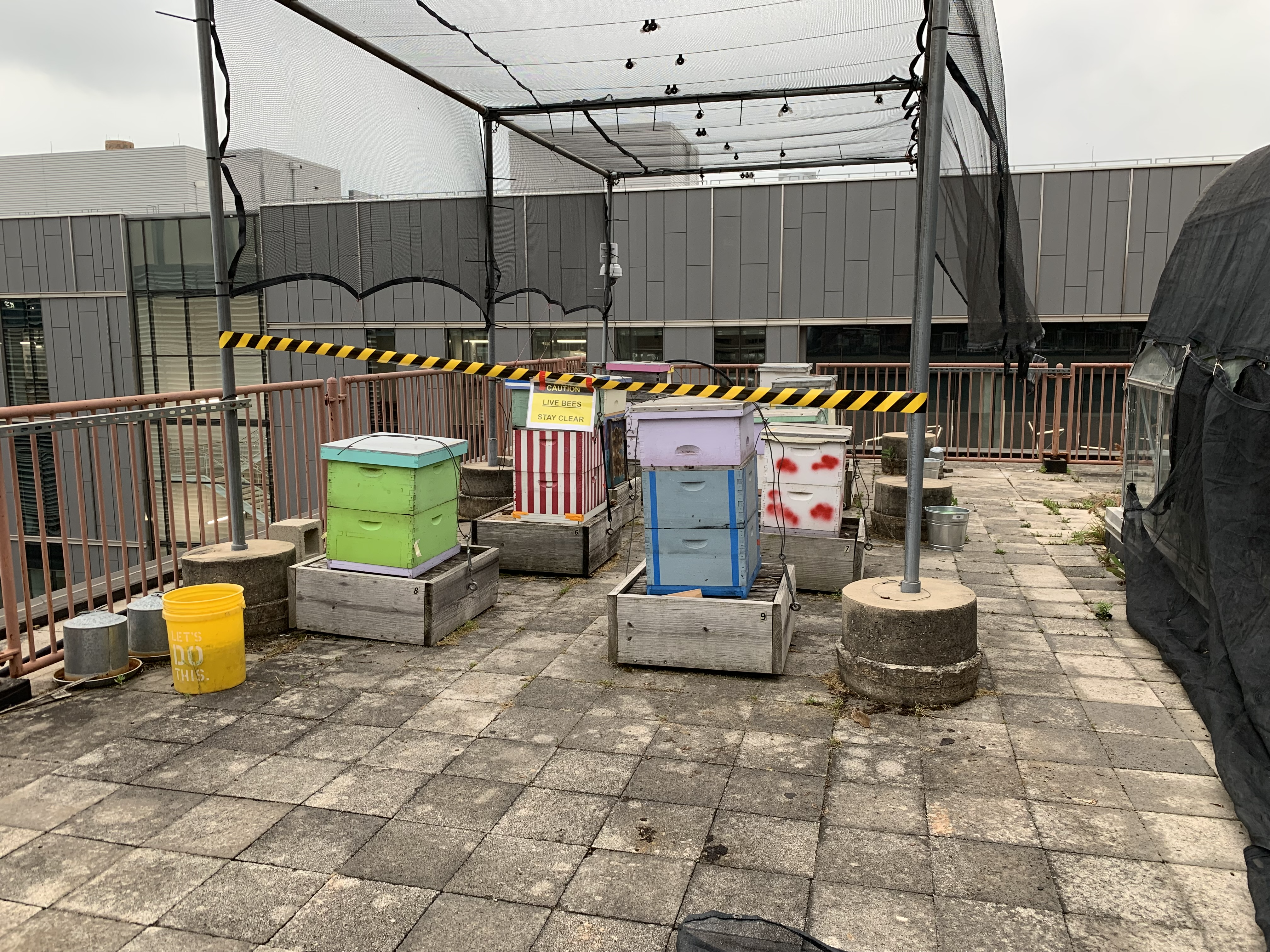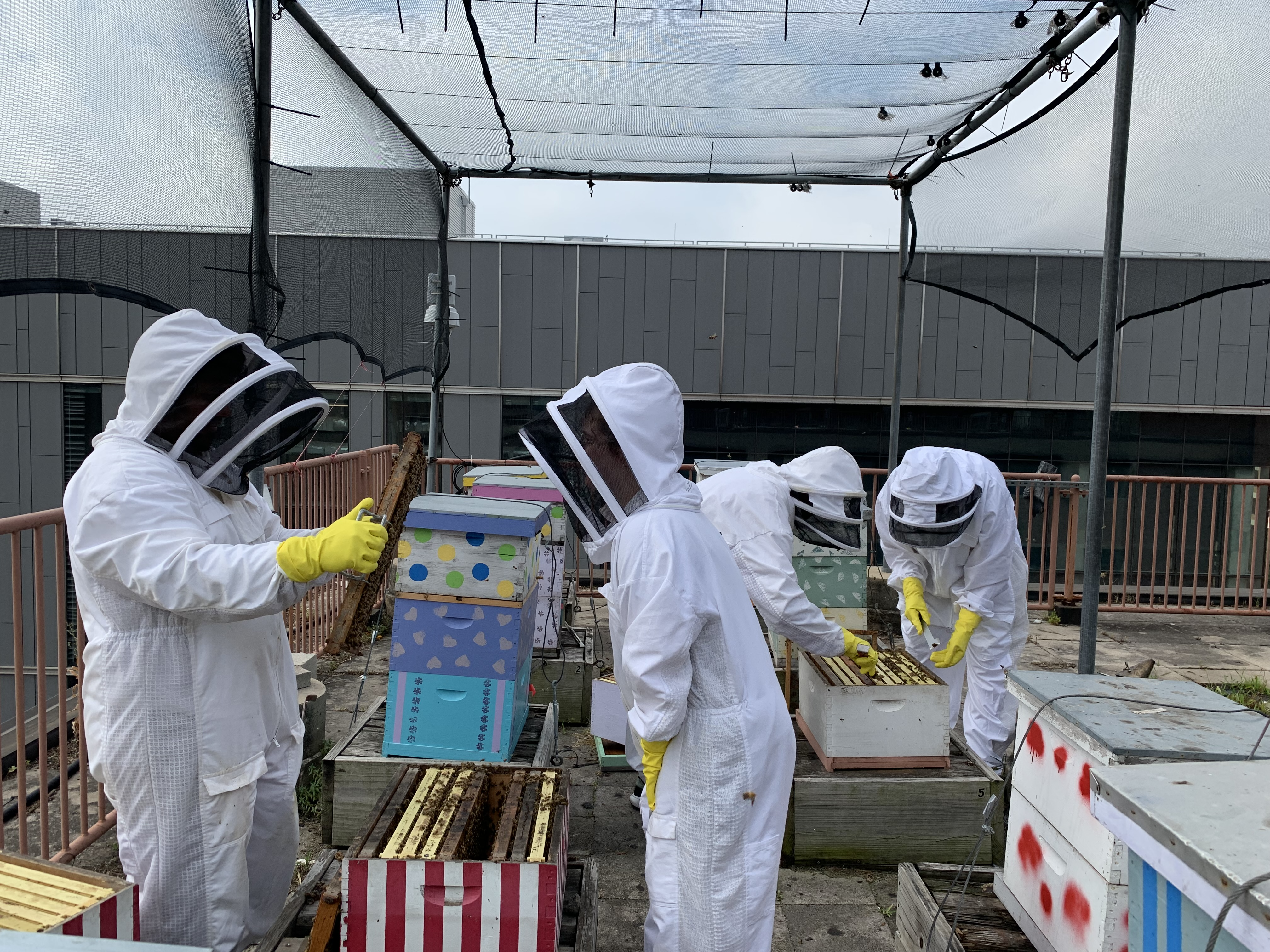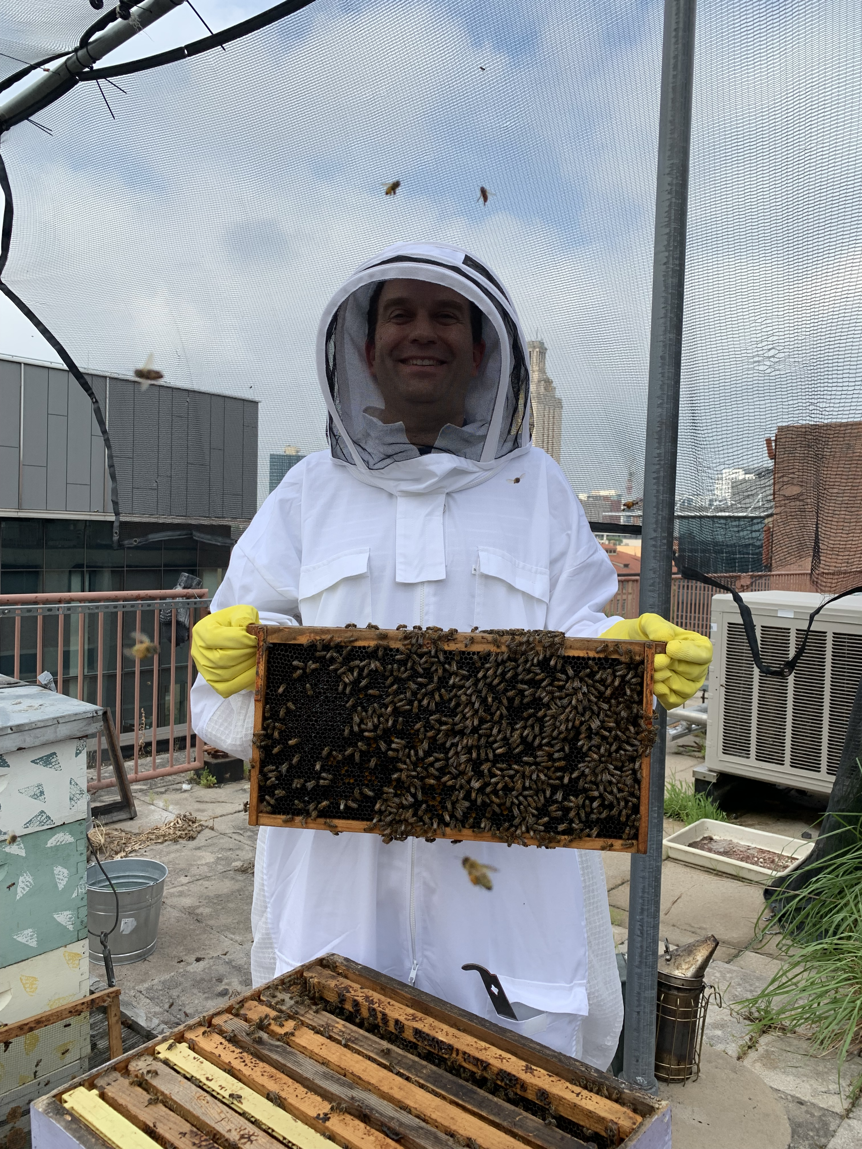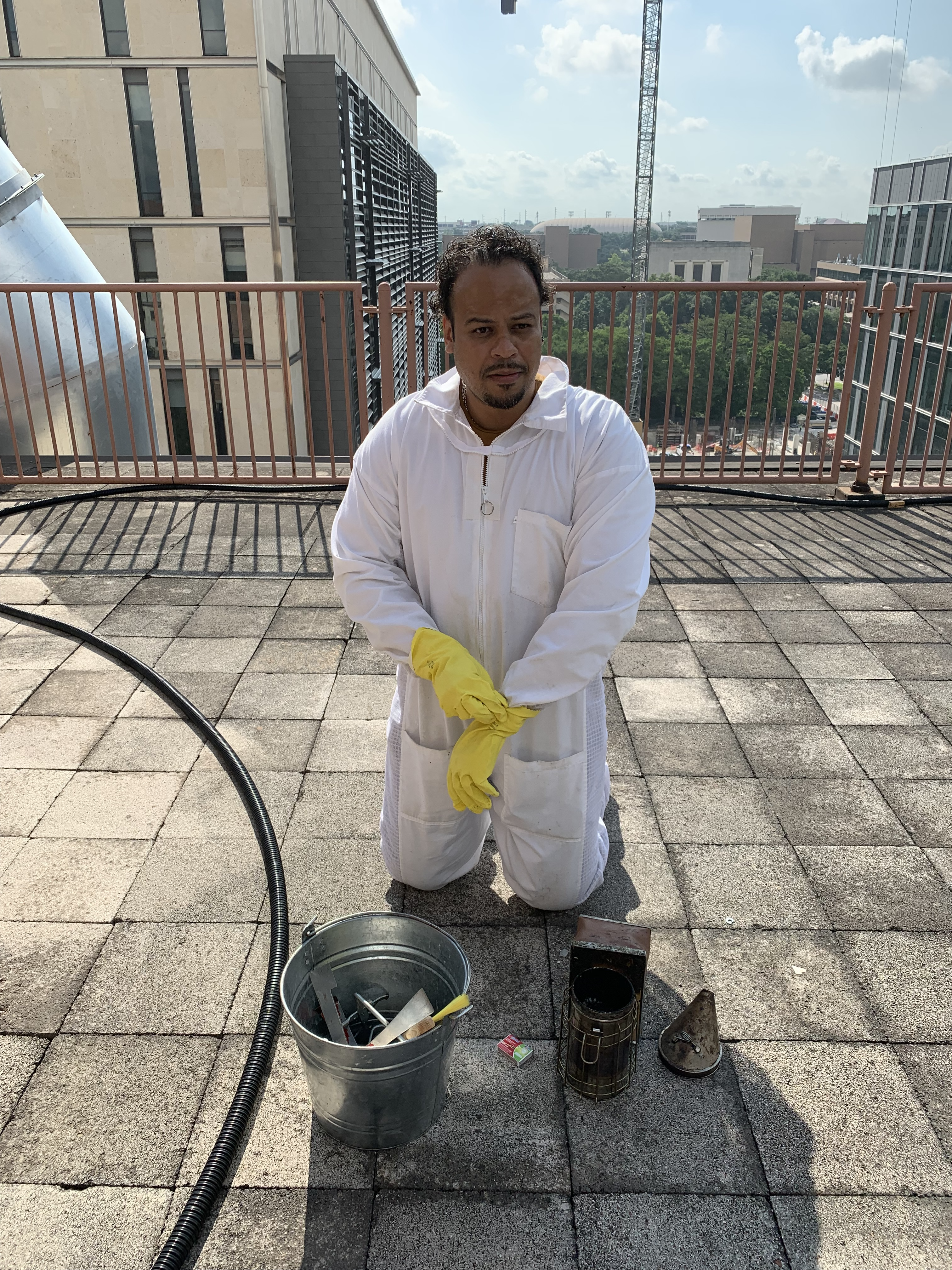 Erick d.S.M. and Tyler d.J. back from the rooftop hives (July 2019) |
