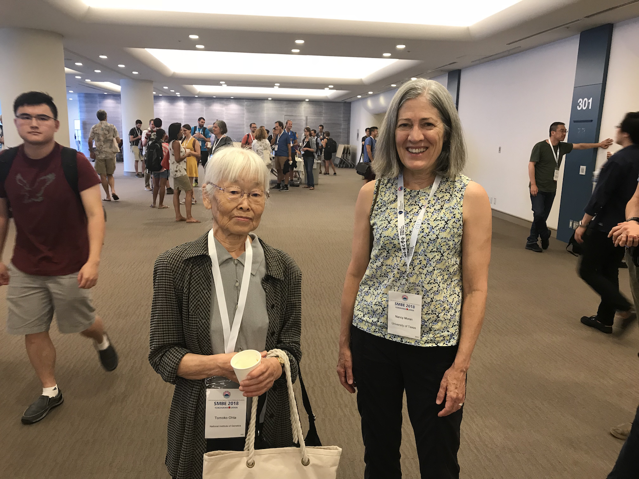 Tomoko Ohta and Nancy Moran at SMBE 2018, Yokohama, Japan (July 2018) |
