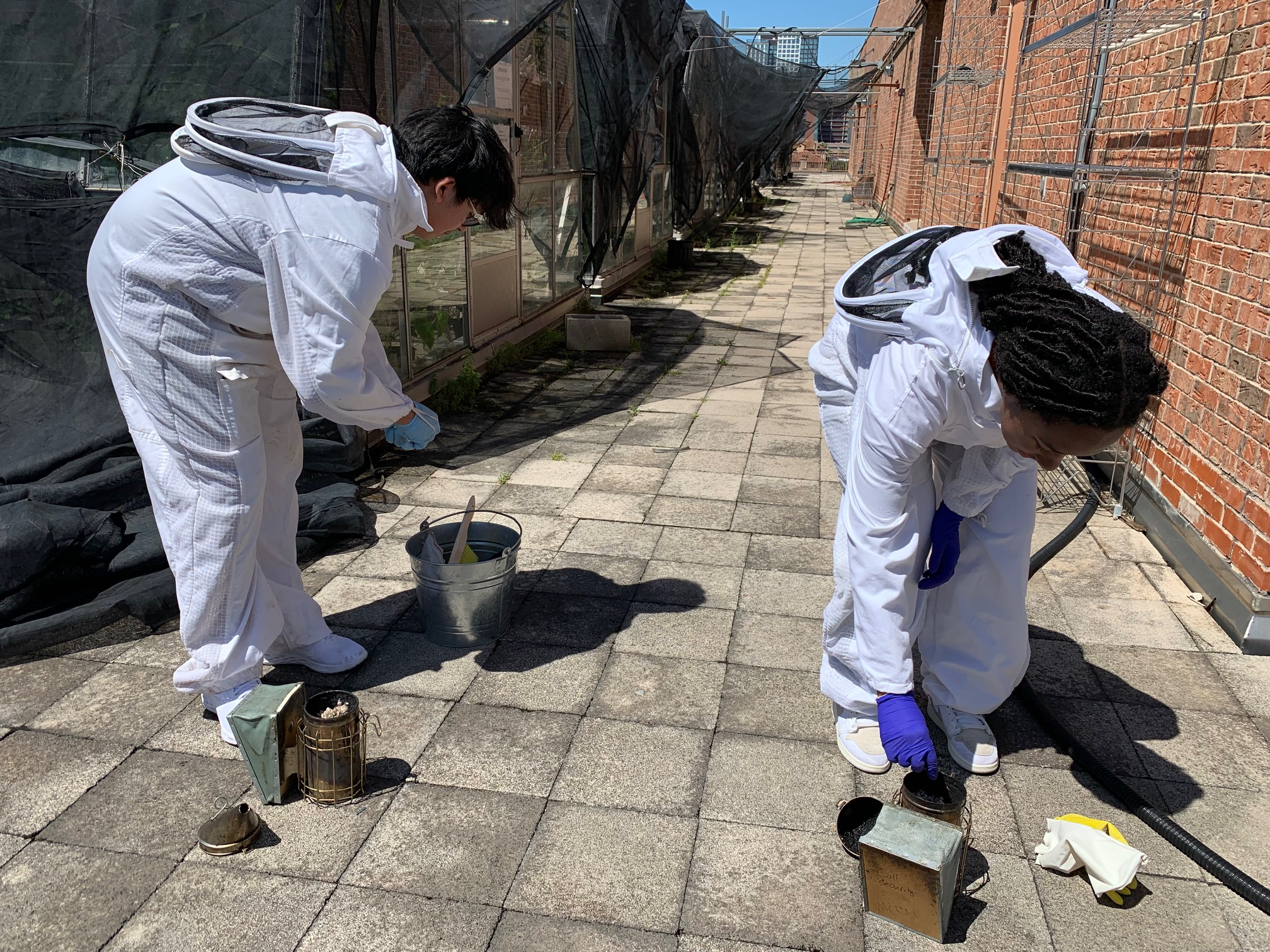 (L to R) Alejandro B. and Hailey A. light bee smokers (April 2024) |