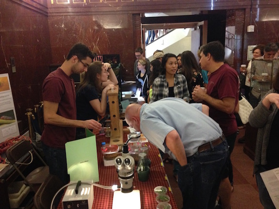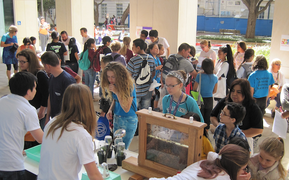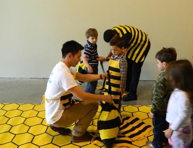 Serena Z. observes bees at CNS Family Day (October 2015)