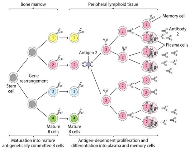 B-lymphocytes have B-cell receptors (BCRs) corresponding to the specific antibody molecule they are genetically programmed to make. These BCRs recognize epitopes of antigens having a complementary shape. Different B-lymphocytes are programmed to produce different BCRs, each specific for a unique epitope.