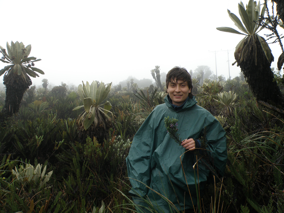 Oscar with Diplostephium hartwegii in the páramo, Nariño, Colombia. |